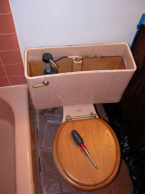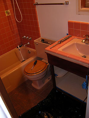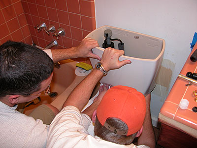 See that bandana on my arm? Its acting a tournequet from the sharp lathe that backed the concrete that cut me earlier. Blood and new sinks don't mix!