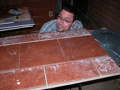 With the table behind us, we think we're ready to get serious. It's time to cut the tile for the sink.