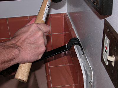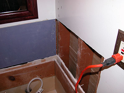 See that bandana on my arm? Its acting a tournequet from the sharp lathe that backed the concrete that cut me earlier. Blood and new sinks don't mix!